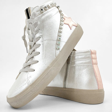 RIRI merges vintage sneakers with a cool rock 'n roll attitude. Crafted from faux leather and detailed with metallic studs, these high-top sneakers deliver a hardcore blend of retro style and cool. Wear yours with everything from dresses to jeans.