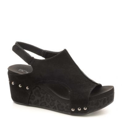 This stylish women's shoe is a combination of your favorite sandal, bootie and wedge all in one great shoe. The upper is crafted of soft vegan leather. Cork sole.