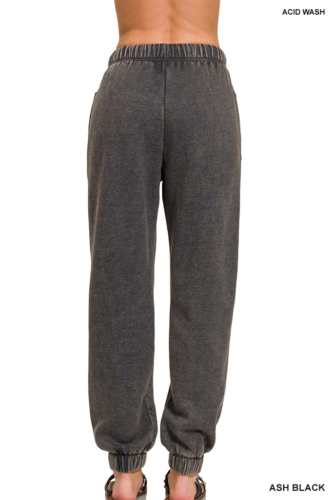 ACID WASH FLEECE SWEATPANTS WITH POCKETS