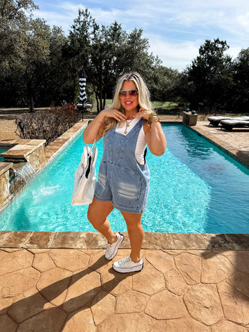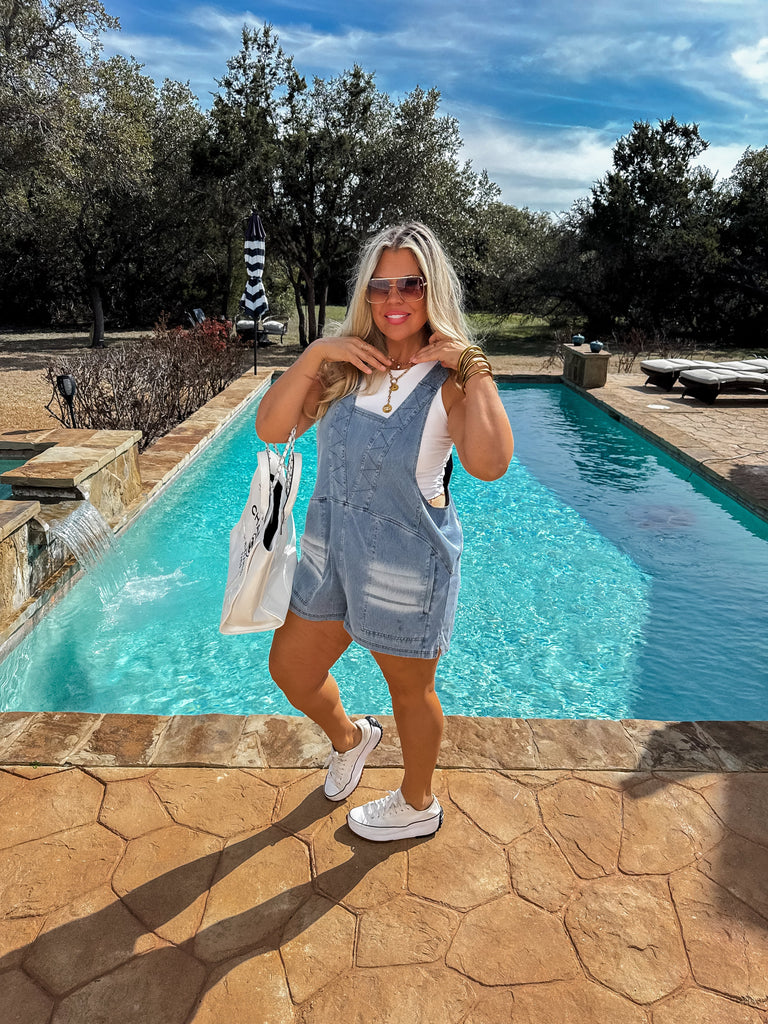 This lightweight, super stretchy denim fabric looking romper is designed with a relaxed fit, featuring a flattering V-neckline and subtle seam detailing for a structured yet casual look. Functional pockets make it as practical as it is stylish. Whether layered over a tank or worn solo, this romper is the perfect!!
