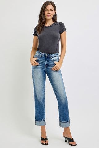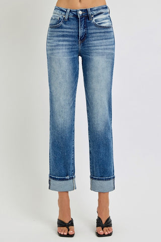 The High Rise Crop Straight Roll Up Jeans are a versatile and stylish essential for any wardrobe. Featuring a high-rise waist and a straight-leg silhouette, these jeans offer a flattering and comfortable fit. The cropped length and rolled-up hem add a touch of casual charm, making them perfect for both everyday wear and special occasions. Pair them with a simple tee for a casual look or dress them up with a blouse and heels for a more polished ensemble. Crafted from high-quality denim, these jeans are sure to become a staple piece in your closet.