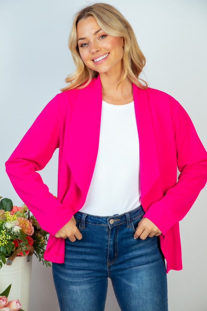 This soft and flowy CURVY PRETTY IN PINK CARDIGAN will have you looking your curviest! Made from a lightweight crepe knit, this cardi boasts an open front, a draped collar, and a playful handkerchief hemline. Spoiling yourself never looked so stylish!