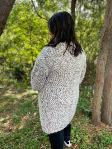 The softest, fuzziest cardigan in two beautiful color combinations. The subtle blend of colors in each sweater gives you so many pairing options - plus there are pockets for all of your snacks! :)