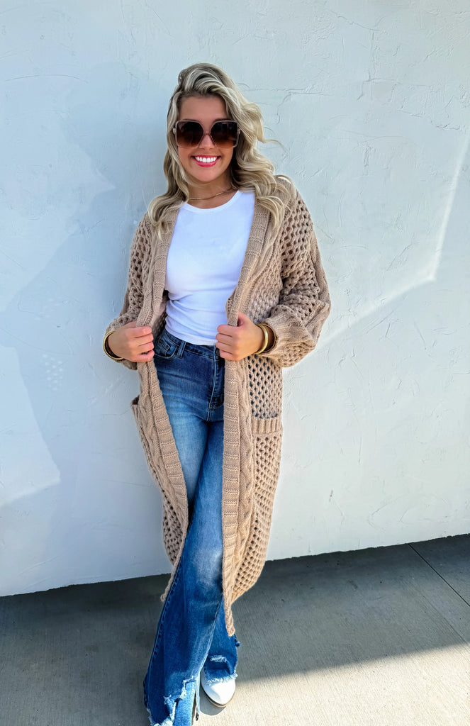 Wow, these cardigans are a total stunner! You will get compliments where-ever you go! This sweater knit fabric cardi features side pockets and is perfectly paired with jeans!
