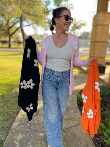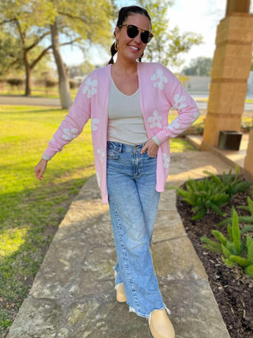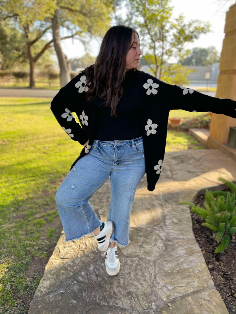 Embrace the laid-back vibes of this ribbed knit cardigan. Featuring a simplistic floral design, drop sleeve and open front. Available in three colors!