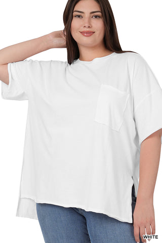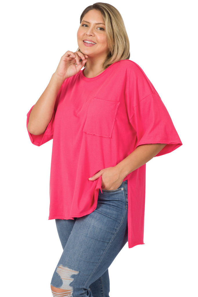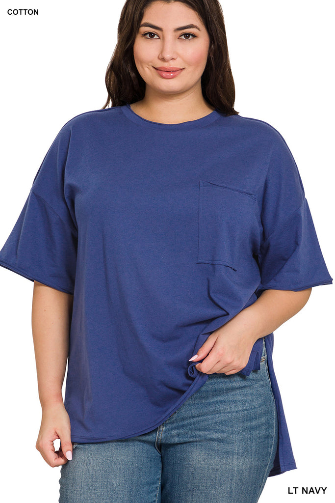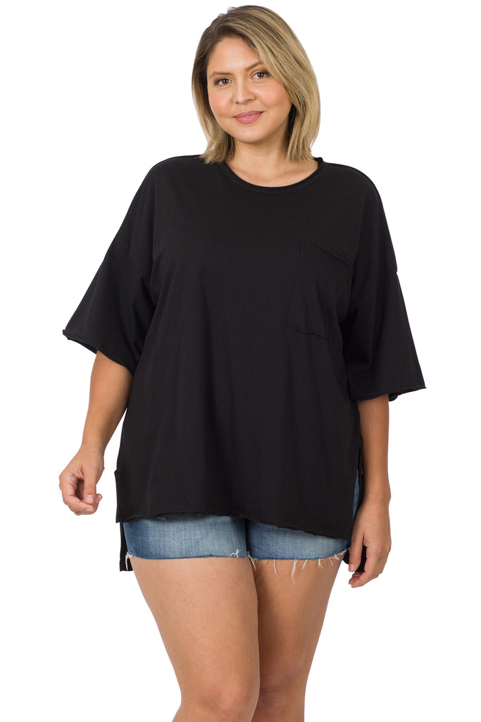 PLUS FRONT POCKET RAW EDGE TOP WITH SIDE SLITS