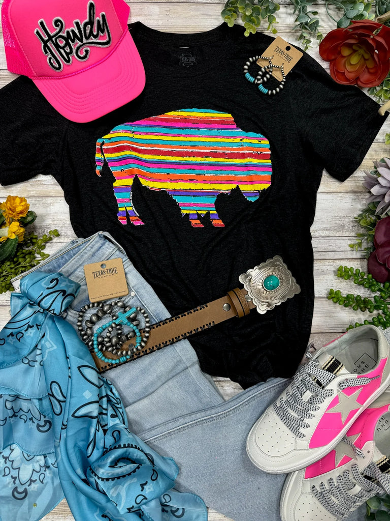 Full of color and so so fun!! Serape print buffalo with so many bright colors!