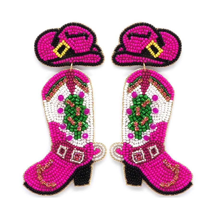 Cowgirl Boots & Hat Seed Beads Post Earrings