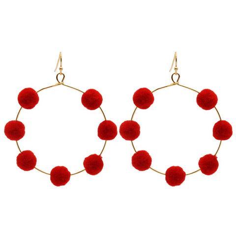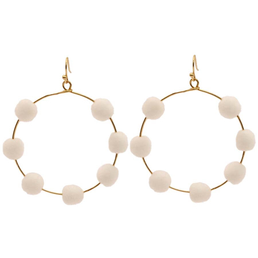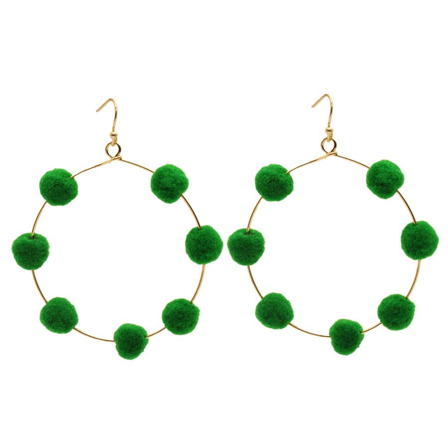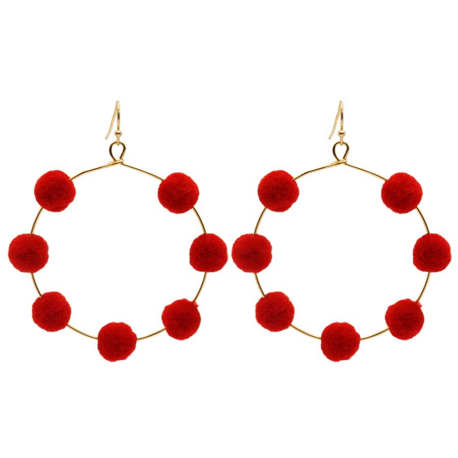 Round Wire Pom Pom Dangle Earrings