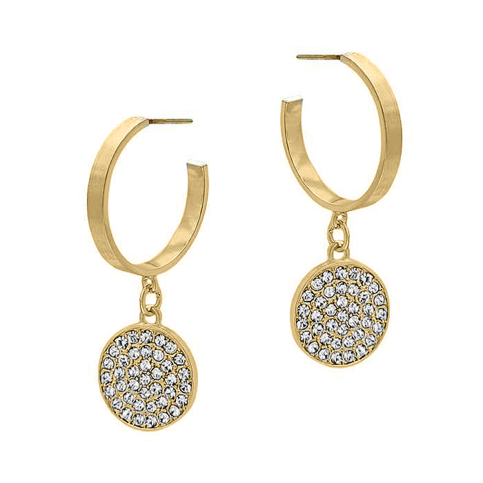 Round Pave Stone, Metal Hoop Dangle Earring.