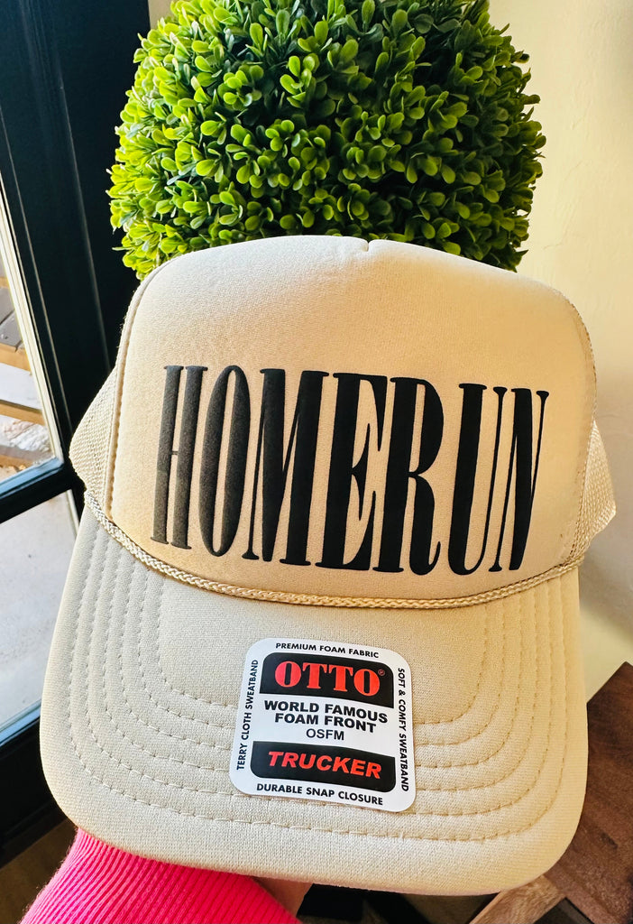 HOMERUN Black Puff Vinyl on a Khaki Foam Trucker Hat