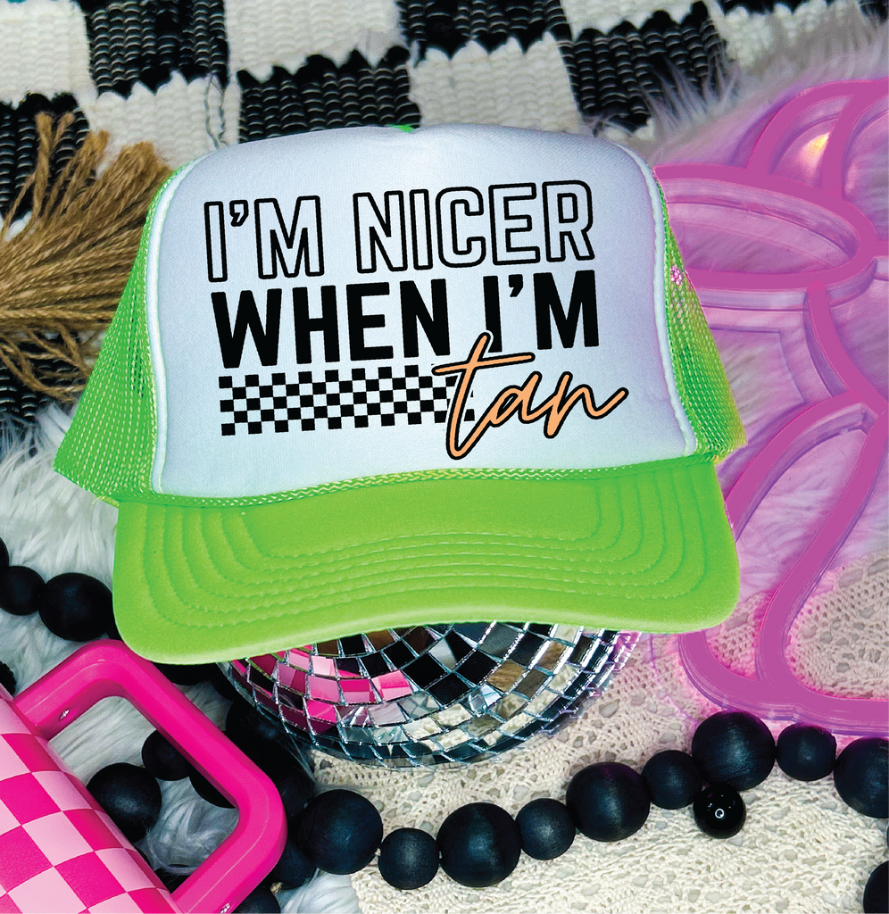 I'm Nicer When Tan DTF Printed Neon Green & White Trucker Hat