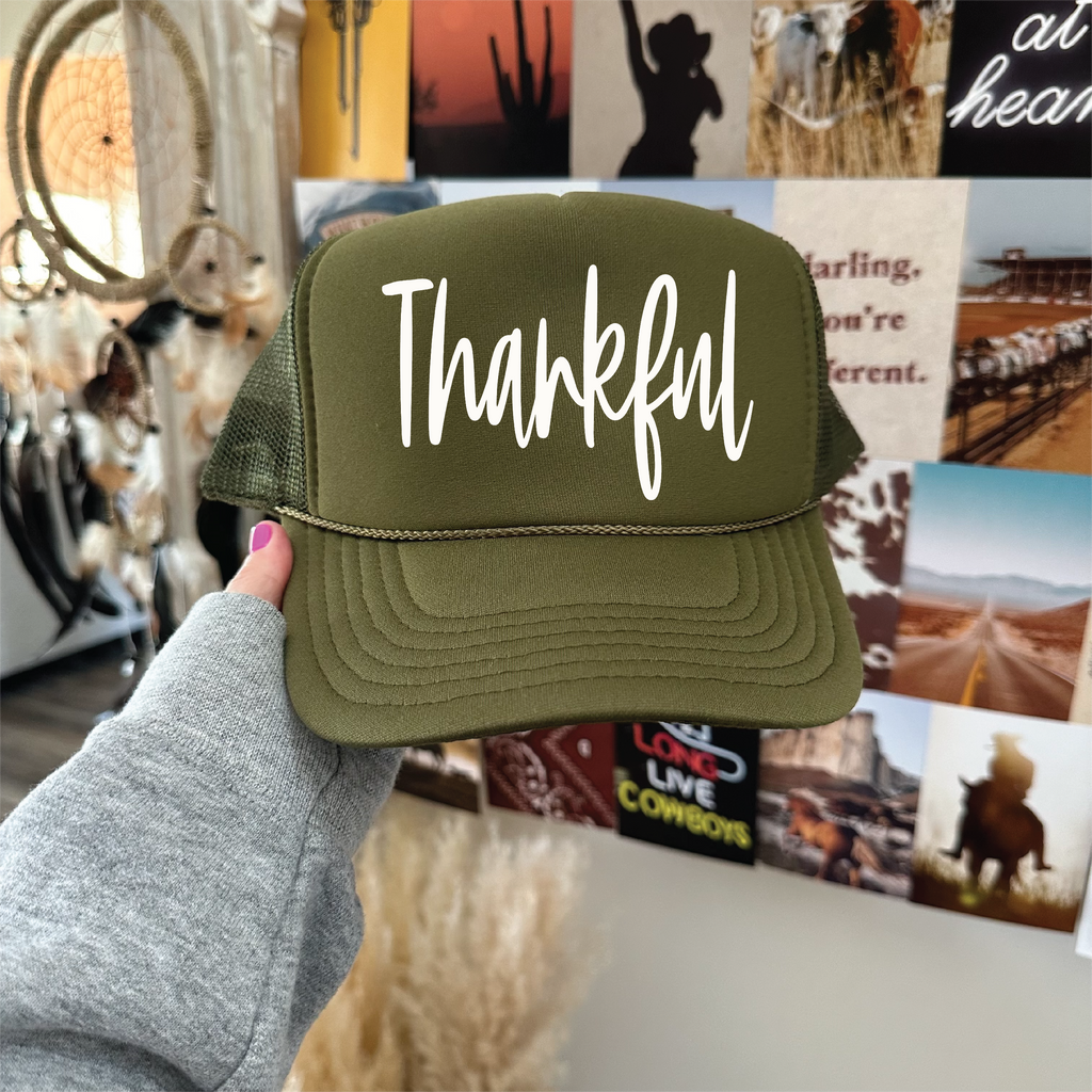 Thankful DTF Printed Olive Trucker Hat