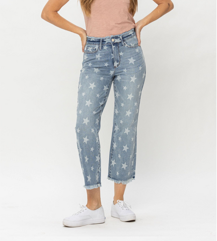 JB CURVY STAR PRINT CROPPED STRAIGHT JEANS