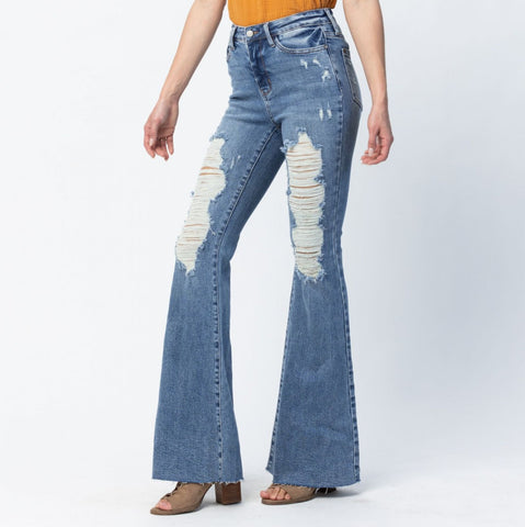 HIGH WAIST HEAVY DESTROYED FLARE