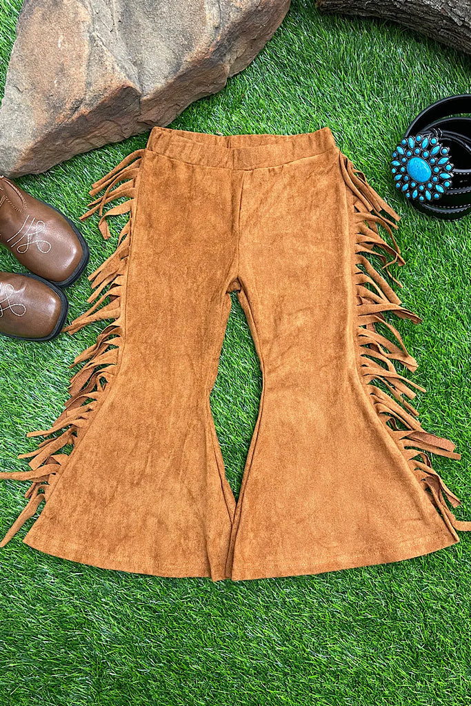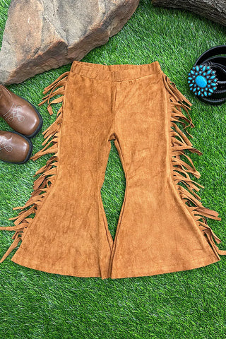 SUEDE FABRIC FRINGE BOOT CUT PANTS