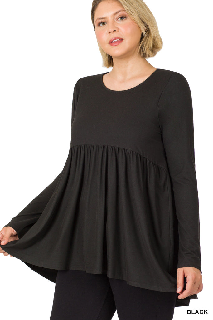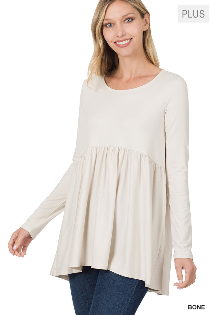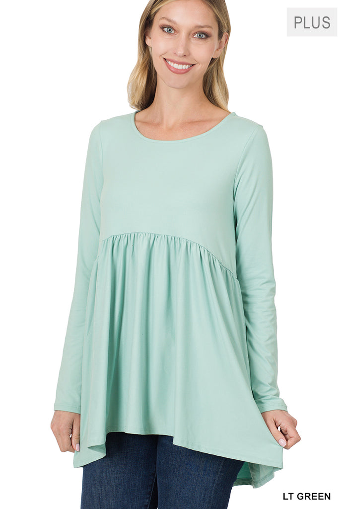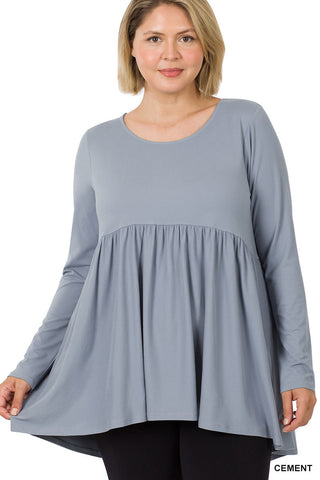 PLUS BRUSHED DTY LONG SLEEVE WITH WAIST SHIRRING TOP