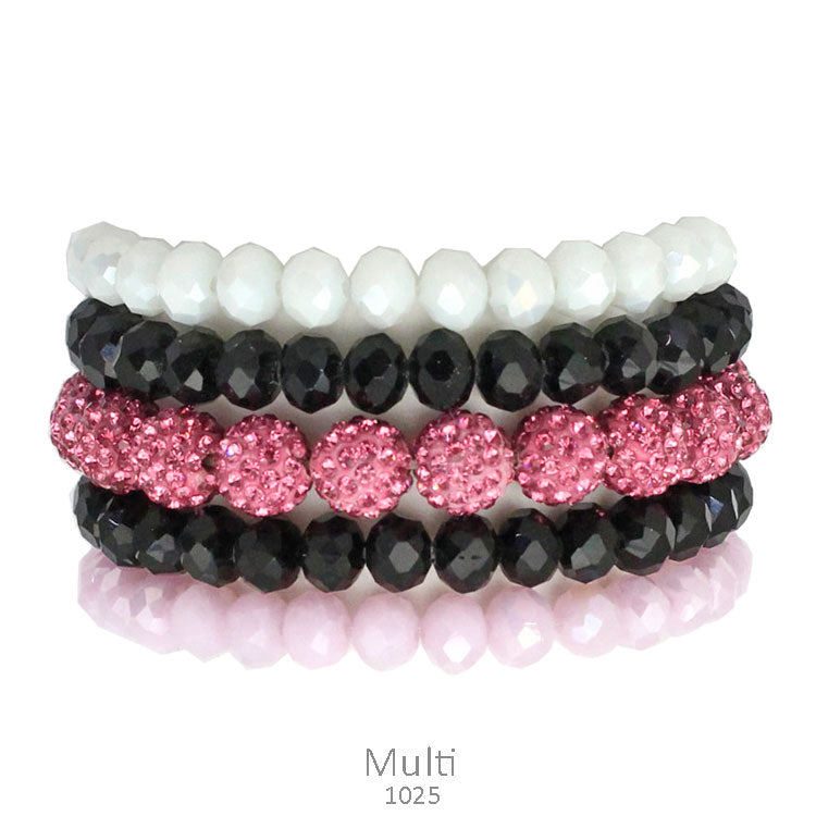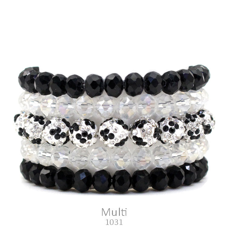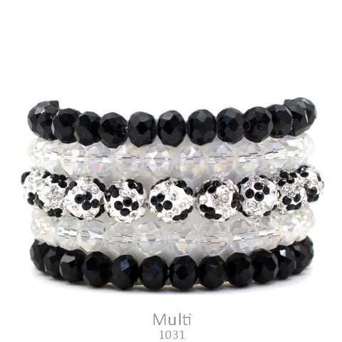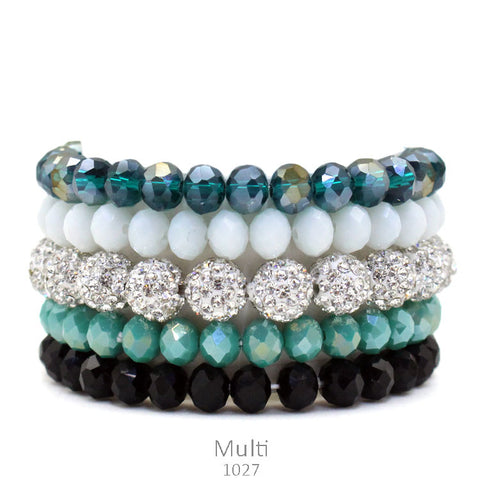 Crystal Stone & Rhinestone Stretch Bracelet - Diameter 2.5" - 5 PCS set - Elastic Band - One size fits all