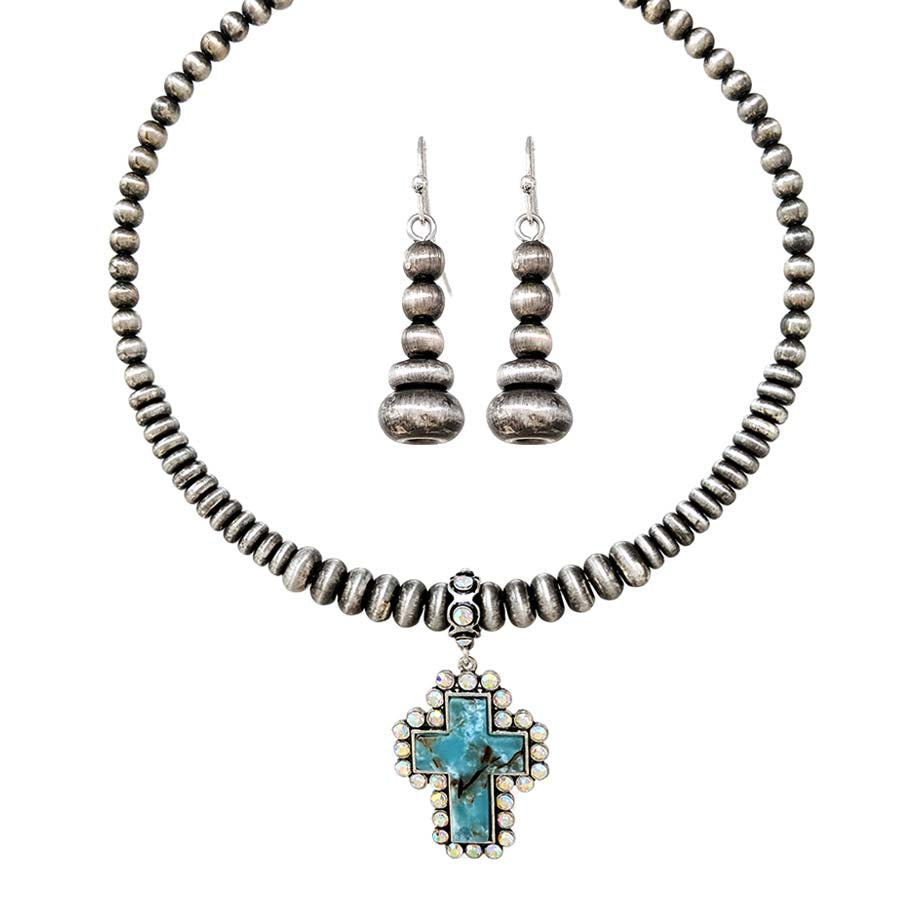 Western Navajo Pearl Wire Necklace w/ Cross Pendant & Earrings Set
