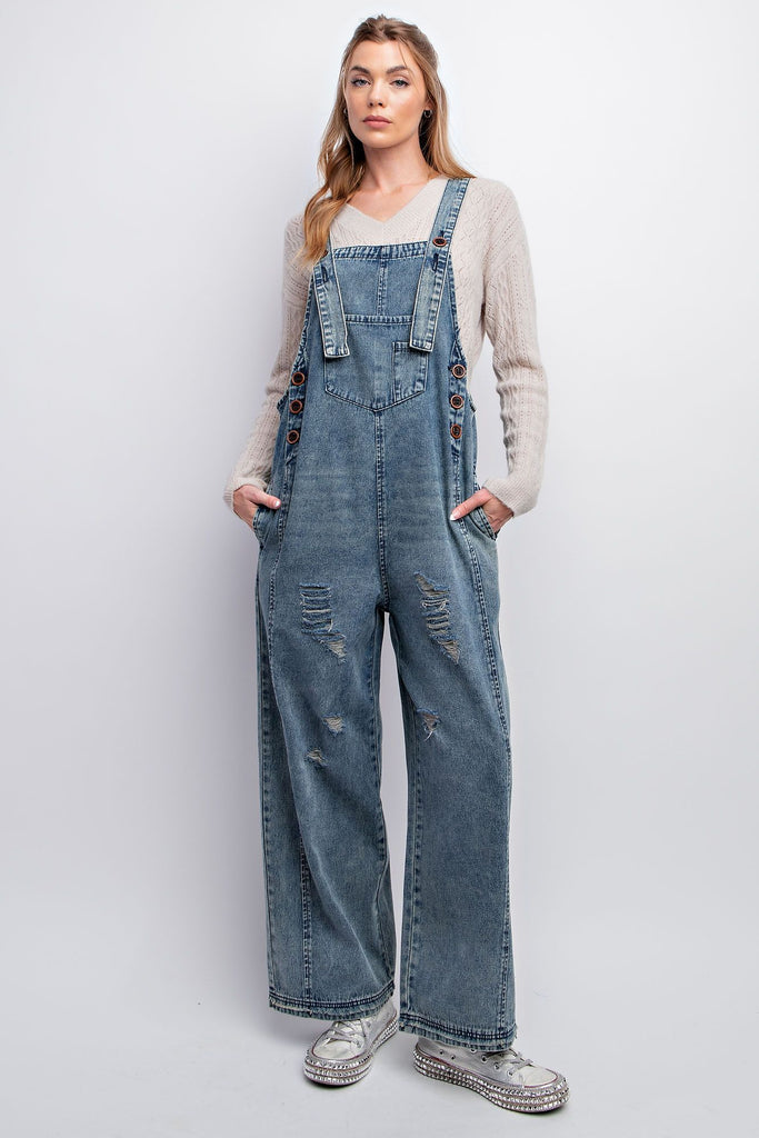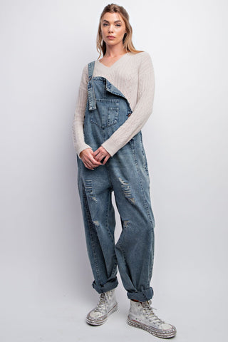 WASHED DENIM LOOSE FIT JUMPSUIT