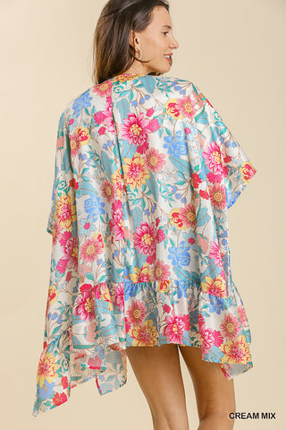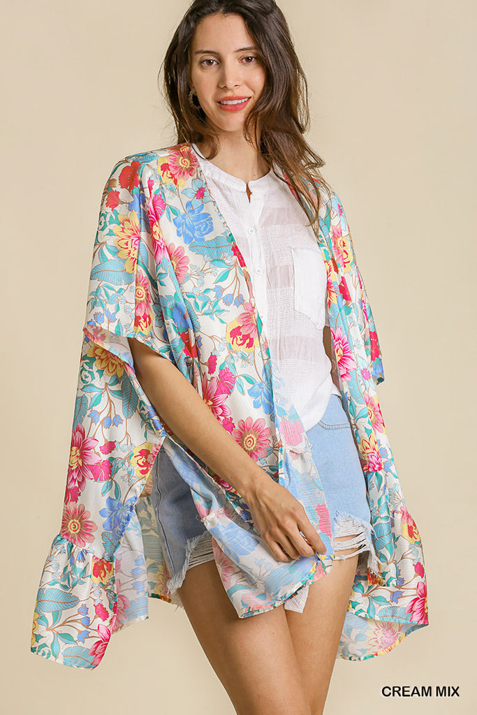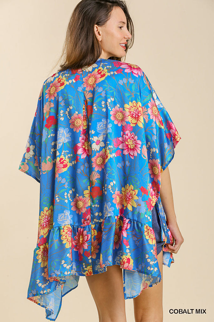 Brighten up any day with this beautiful UMGEE Floral Print Ruffle Kimono! Lightweight and airy, this 100% polyester kimono will add a dose of fun & flirty flair to your wardrobe, with its floral print, ruffles, and romantic vibes. Live in Technicolor!