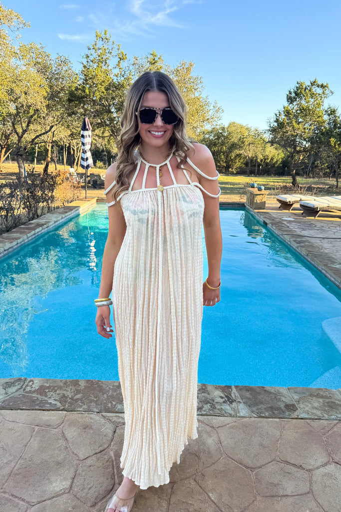 Totally on trend and in! Beautiful strappy Grecian inspired dress.