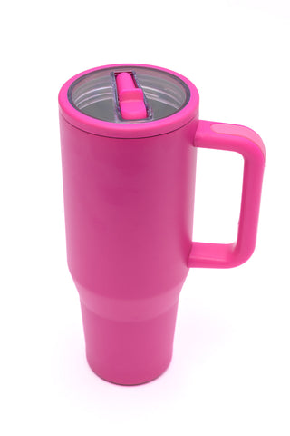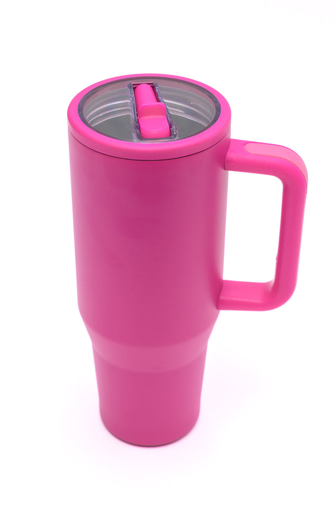 Quench your thirst in style with our No Spill 40oz Tumbler in Hot Pink! This insulated tumbler is 10" tall, made with vacuum-sealed stainless steel for long-lasting freshness, and features a leakproof lid and removable straw. Plus, its rubber anti-slip base keeps spills at bay. Perfect for on-the-go sipping!
