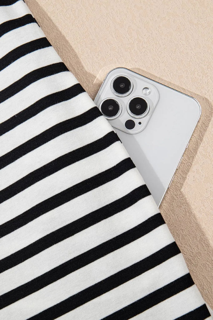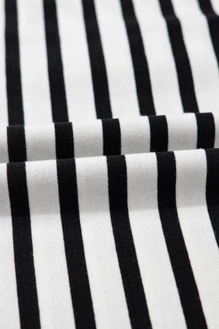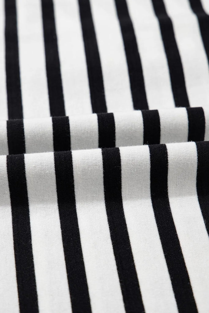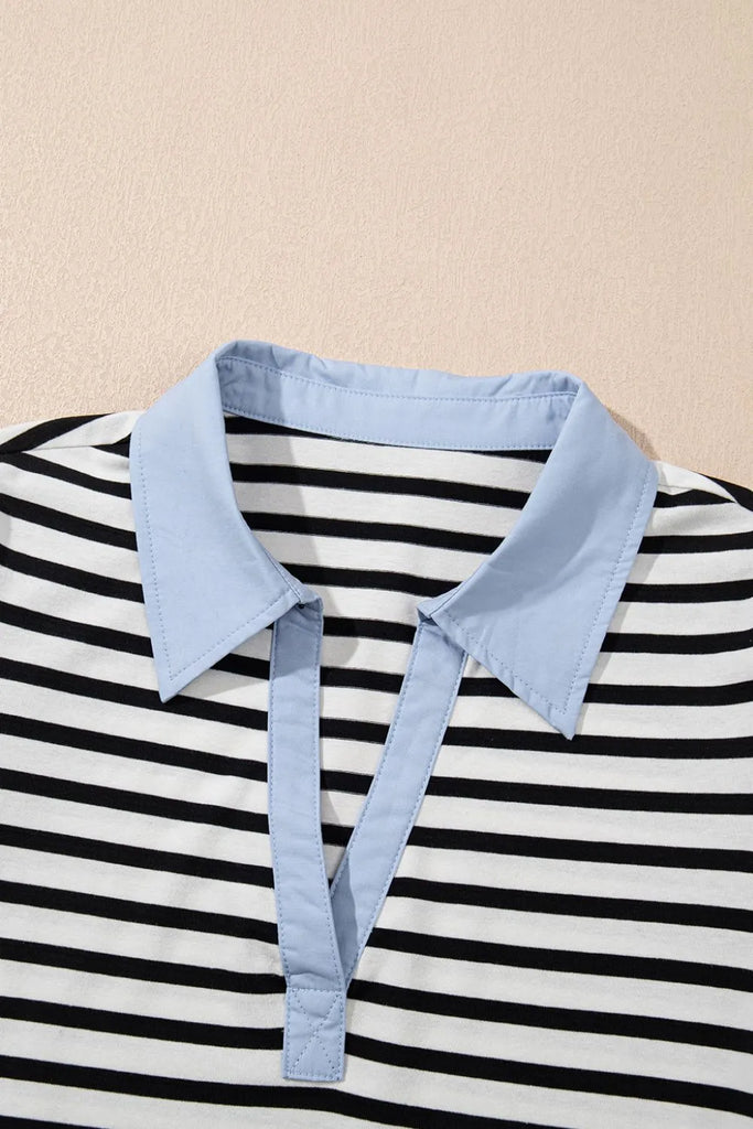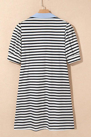 Stripe Contrast V Neck Collared Puff Sleeve T Shirt Mini Dress with Pockets
