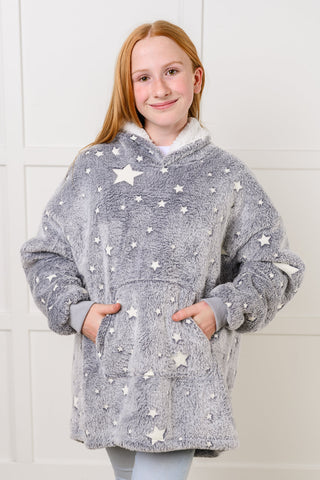 Introduce the little ones to the finer things in life with our Kids Oversized Hoodie Blanket! It's made from super soft poly velour with the coziest sherpa lining and has deep kangaroo pocket. Featuring a hooded neckline and balloon sleeves with banded, ribbed cuffs. Perfect for movie nights, errand runs, or just chilling around the house!