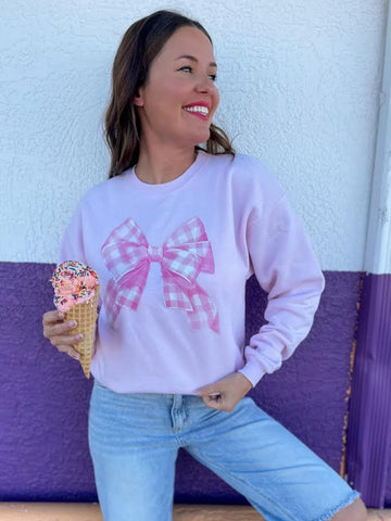 Oliver and Otis Bubblegum Plaid Bow Sweatshirt