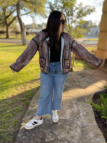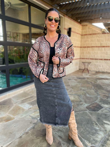 Make a statement in this leopard print jacket! Featuring an open front, black contrast detailing and pockets.