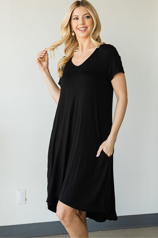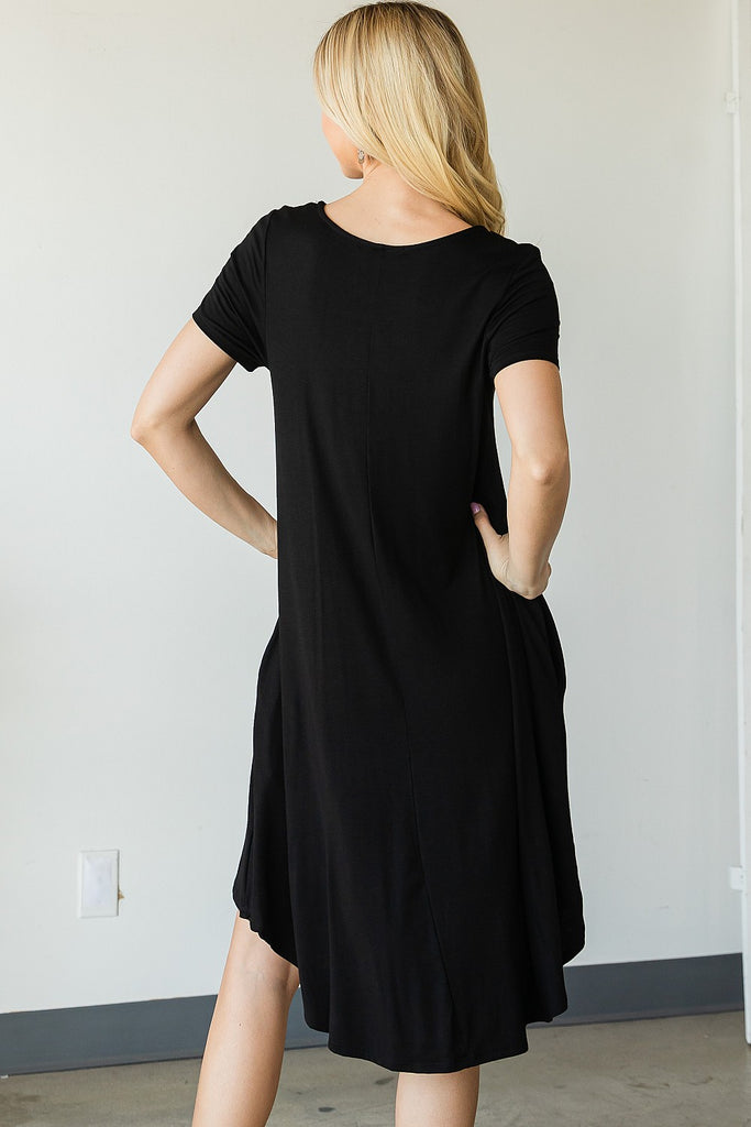 This minimal short sleeve mini dress features side pockets and side slits. It is made with lightweight and soft fabric to provide maximum comfort and style.