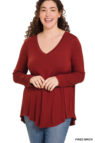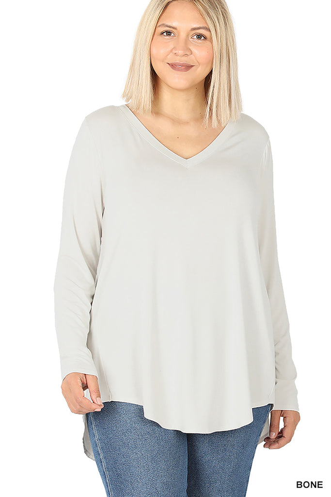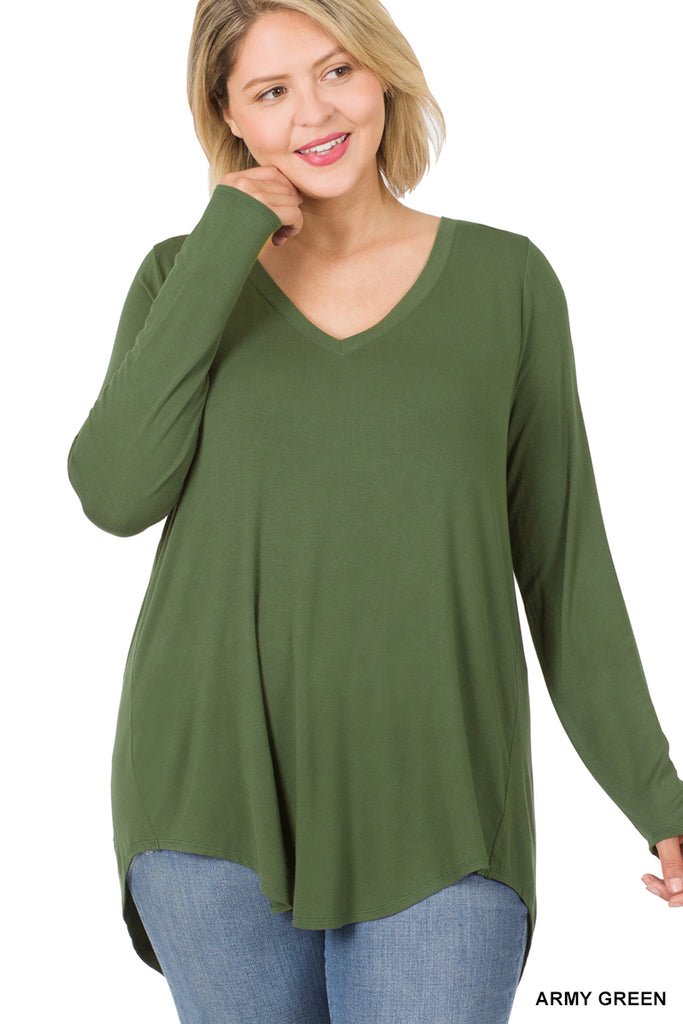 PLUS LUXE RAYON LONG SLEEVE V-NECK HI-LOW HEM TOP(GOOD QUALITY RAYON)