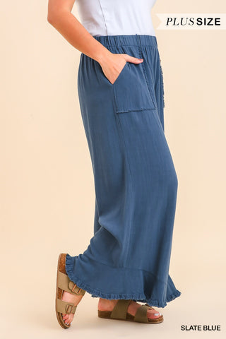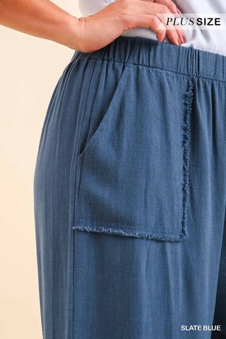 CURVY UMGEE LINEN FRAYED HEM PANTS