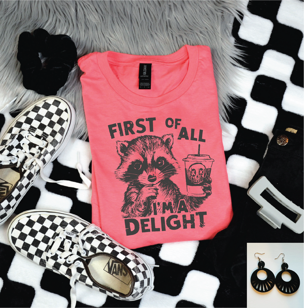 DTG on a Coral Tee *Due to inventory shortages, shirts will either be Bella Canvas, Next Level. Also available in Gildan Softstyle Coral