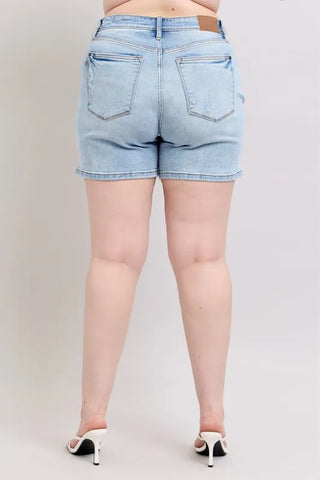 Mid-rise washed denim shorts are a versatile and classic piece for your summer wardrobe. The mid-rise waistline offers a comfortable and flattering fit that sits at the natural waist. The washed denim finish gives the shorts a casual and relaxed vibe, perfect for creating effortless and laid-back looks. These shorts are a staple for warm weather and can be styled in numerous ways. Pair them with a graphic tee and sneakers for a casual weekend outfit, or dress them up with a blouse and sandals for a more polished ensemble. The timeless appeal of denim shorts makes them a versatile and essential piece for creating stylish and comfortable outfits during the summer months.