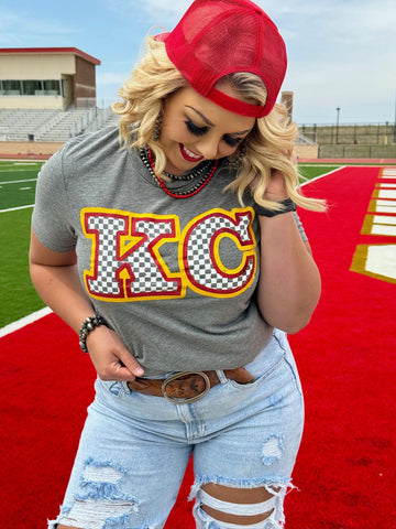 KC in checkered print with Kansas City colors by Quarter Back Productions!
