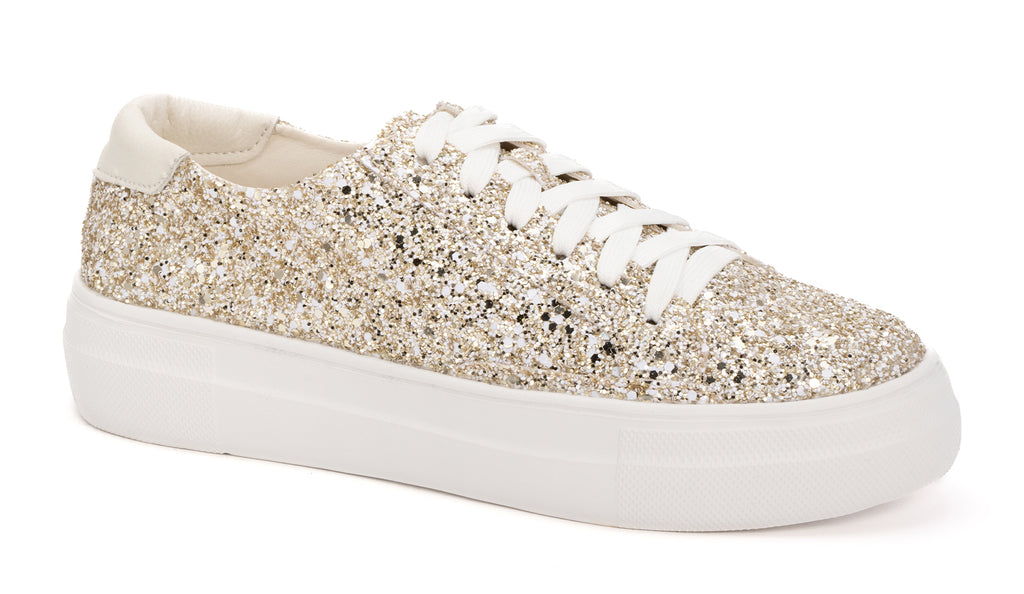 Add some serious sparkle to your daily look with CORKY'S CHUNKY GLITTER SNEAKERS! Adorned with eye-catching gold glitter, these 100% Synthetic shoes feature a cushioned footbed for all day comfort and a rubber outsole for durability. Take your style from boring to dazzling with these one-of-a-kind shoes! Sparkle your way into any room!