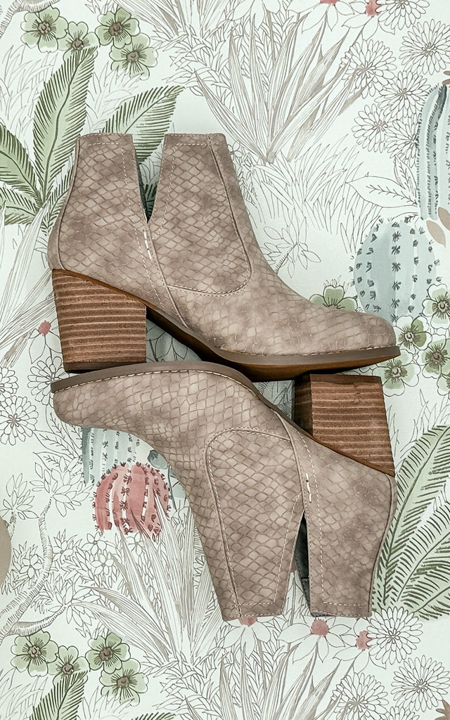 Our Tarim bootie has been a favorite time and time again! A taupe grey upper with a microfiber touch.
