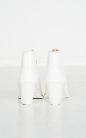 Our Tarim bootie has been a favorite time and time again! We now feature it in faux white croc upper with a matching white sole.
