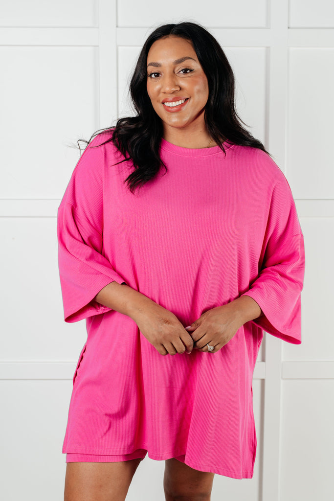 The BEST oversized tee + biker set that you've ever put on your body is here! Custom designed for One Eleven North with high-end ribbed fabric that drapes beautifully and feels simply divine. The tunic-length top features drop shoulders and side slits for added interest, while the classic biker shorts have a wide elastic waistband that makes them fit oh-so-comfortably.