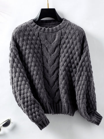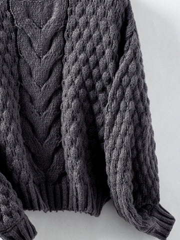 Cable-Knit Round Neck Long Sleeve Sweater