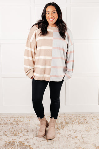 Unleash your creative edge with our Exceptional Thought Striped Patchwork Sweatshirt! Made from a midweight sweater knit, this pullover offers a comfortable and stylish fit. Featuring a drop shoulder and exposed seam details, it's perfect for adding a unique touch to your wardrobe.