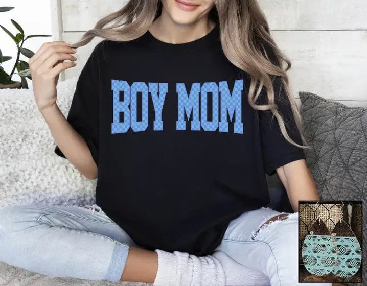 BOY MOM CHECKERED TEE
