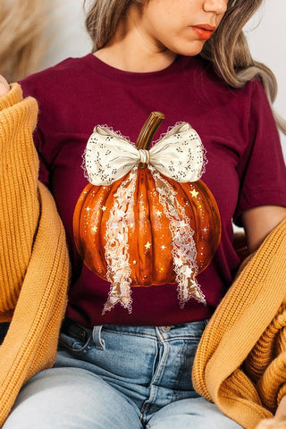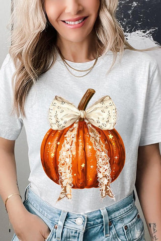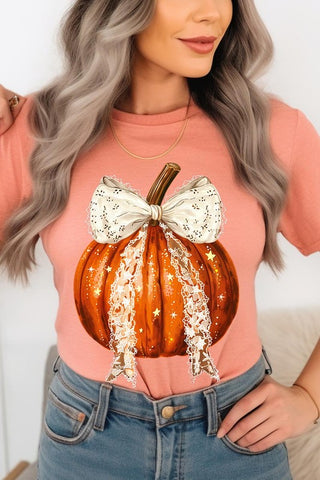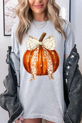 Coquette bow Halloween Pumpkin Graphic Tee.