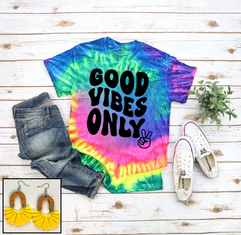 This design is direct to garment printed on a Neon Rainbow Tie-Dye tee (Colortone brand). Tees are short sleeved with a rounded neckline & are true to size with a unisex fit. Made up of 100% Cotton.