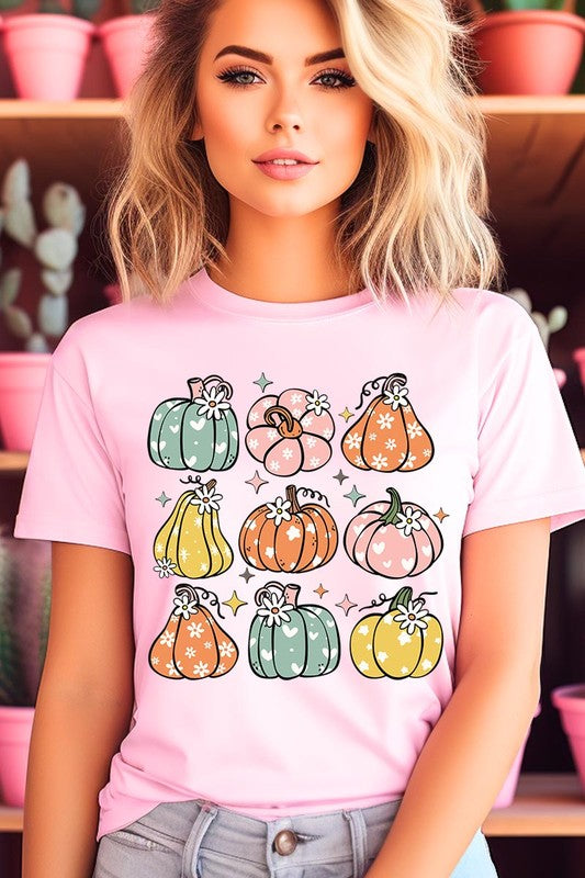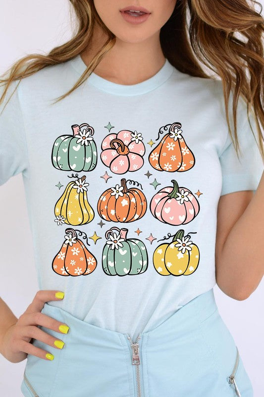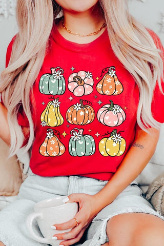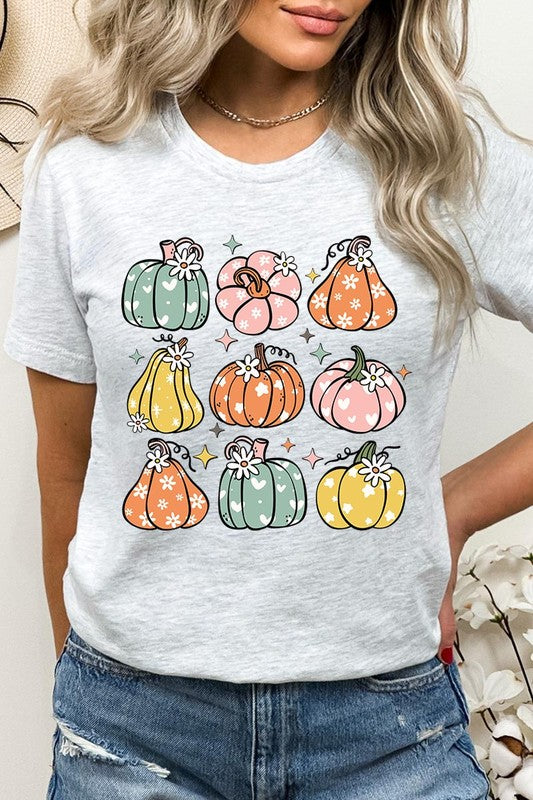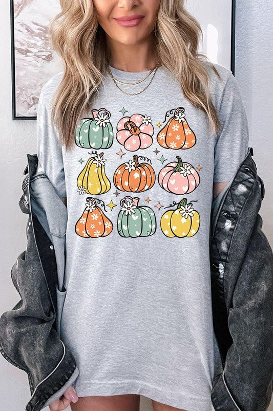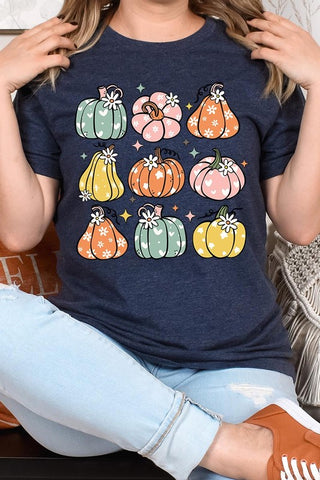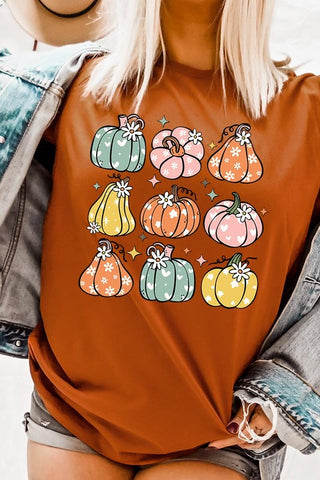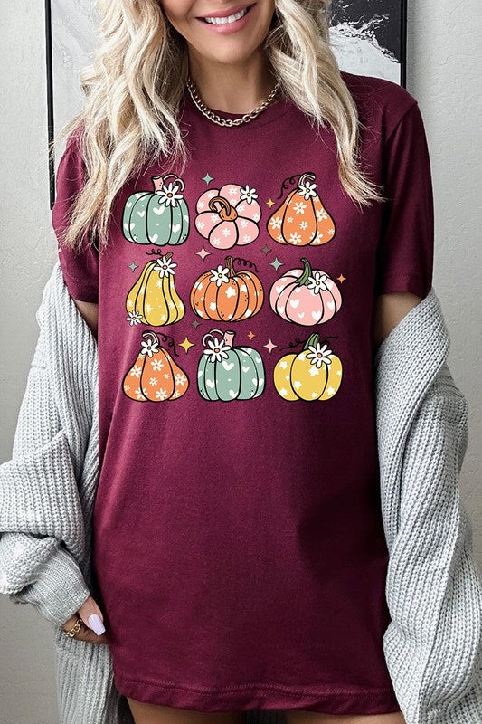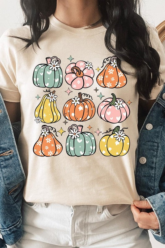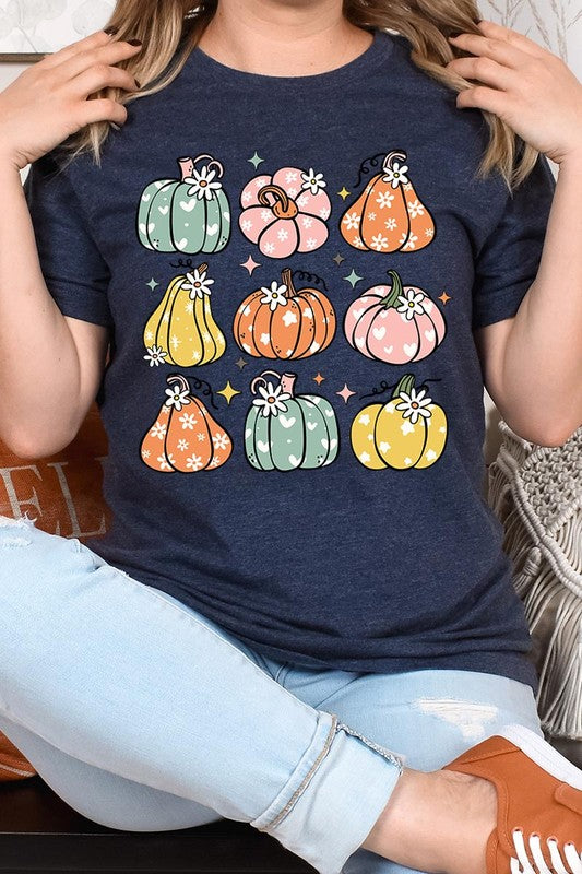 Pumpkins & Daisies Retro Fall Graphic Tee.