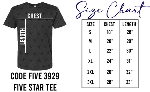This design is direct to garment printed on a Cream Stars tee (Code Five brand). Tees are short sleeved with a rounded neckline & are true to size with a unisex fit. Made up a 60% Cotton & 40% Polyester blend.