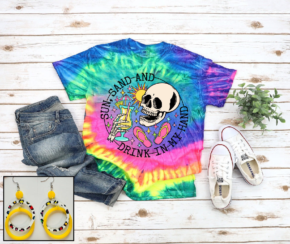 This design is direct to garment printed on a Neon Rainbow Tie-Dye tee (Colortone brand). Tees are short sleeved with a rounded neckline & are true to size with a unisex fit. Made up of 100% Cotton.