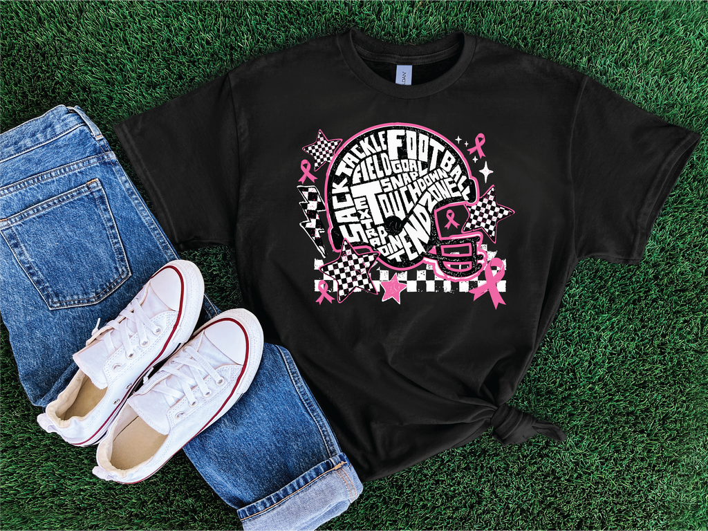 Breast Cancer Football Helmet- Football Graphic T-shirt